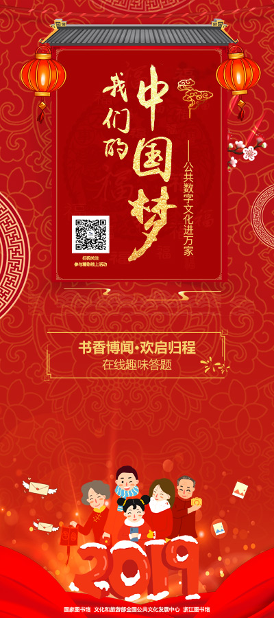 1、扫描左方二维码,关注微信公众号,点击菜单“互动”-“新春活动”栏目进入活动页面,选择“书香博闻 欢启归程”在线趣味答题进行游戏。